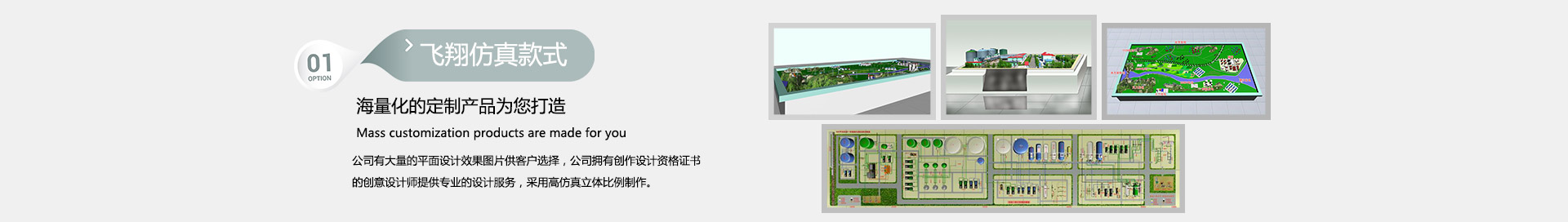 長沙市飛翔仿真模型有限公司專業(yè)制作石油化工、水利水電、工業(yè)設(shè)備、地質(zhì)地貌、新能源科普、大型機械設(shè)備,動態(tài)智能演示……等教學(xué)展覽仿真模型,是集實訓(xùn)室裝置及模型設(shè)備設(shè)計開發(fā)、生產(chǎn)制作、銷售服務(wù)為一體的專業(yè)綜合性企業(yè)。公司秉承著專業(yè)的設(shè)計理念,高級的制作工藝,高品質(zhì)的服務(wù)態(tài)度,完善的售后體系,為您提供高端模型產(chǎn)品,力爭滿足客戶的任何需求。